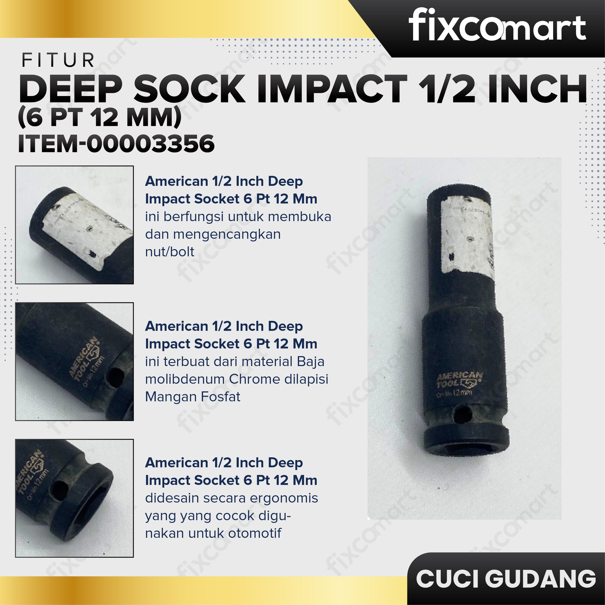 AMERICAN TOOL 1/2" Dr. Deep Sock Impact 6 PT 12 mm
