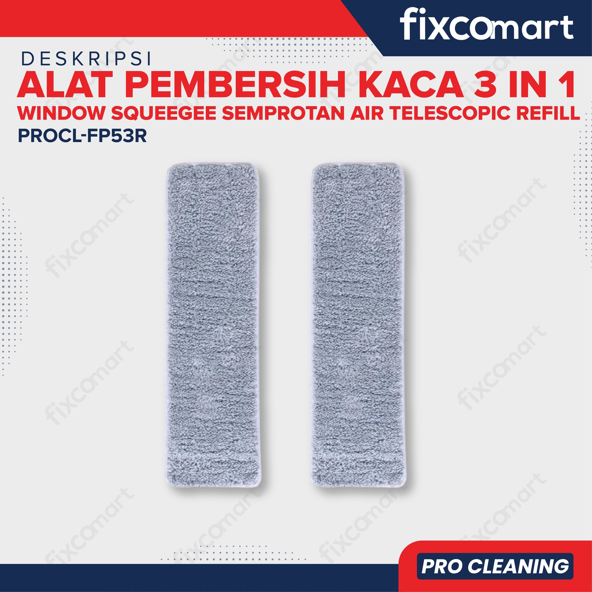 Refill Kain Microfiber Alat Pembersih Kaca 3 in 1 PROCL-FP53R (Isi 2 Pcs)