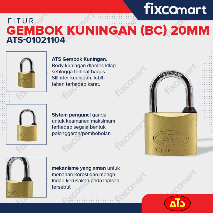 ATS Gembok Kuningan. Body kuningan dipoles kilap sehingga terlihat bagus.