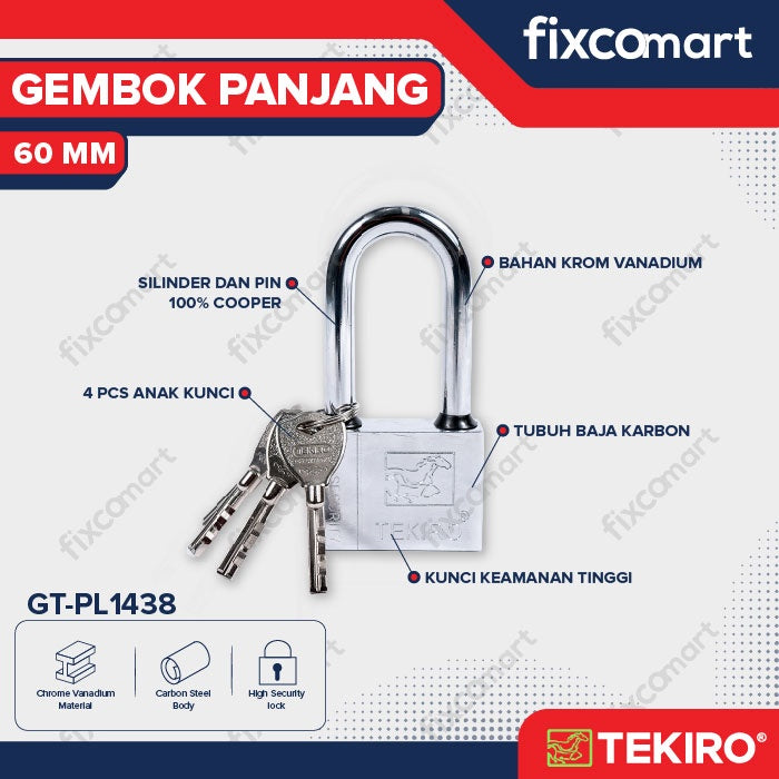 Kunci Gembok Leher Panjang Tekiro 60 MM