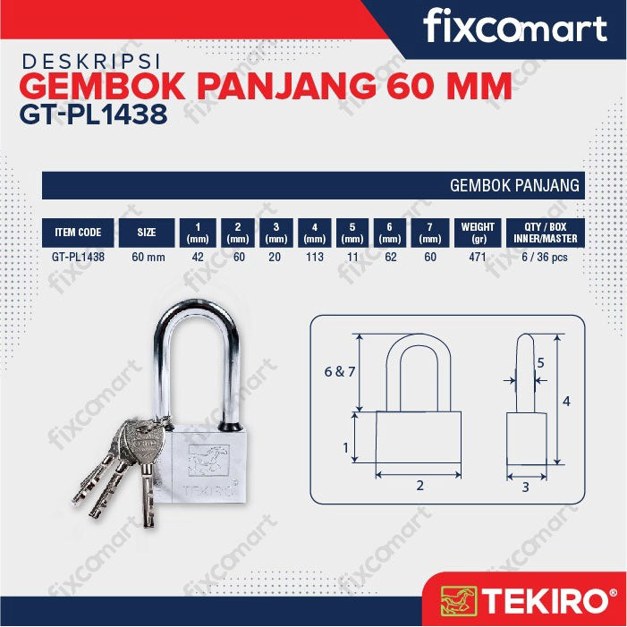 Gembok Leher Panjang 60 mm / Gembok Tekiro