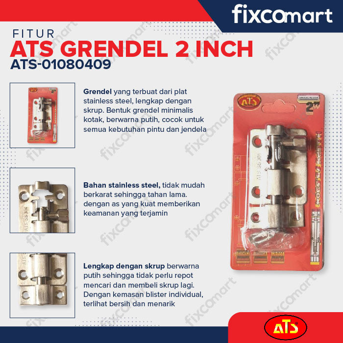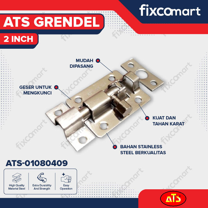 Ukuran Ideal: Dengan ukuran 2 inci, grendel ini cocok untuk berbagai jenis pintu, baik itu pintu rumah, pintu lemari, atau pintu lainnya.