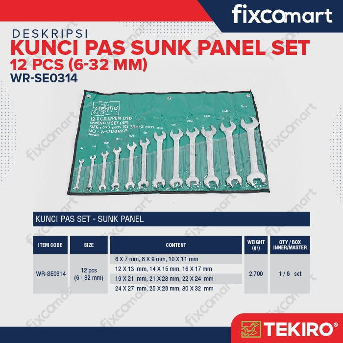 Tekiro Kunci Pas Set Sunk Panel 12 Pcs (6-32 mm)