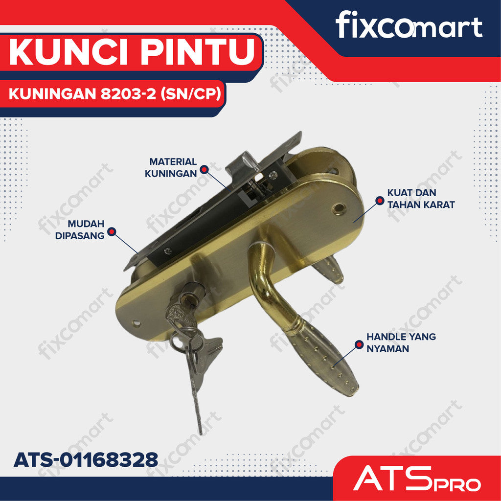 KUNCI PINTU "ATS PRO" CYL. KUNINGAN 8203-2 (SN/CP)