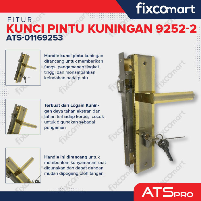 Keamanan Anda adalah prioritas kami! Dapatkan kunci pintu "ATS PRO" CYL. Kuningan 9252-2 (SN/CP) untuk memastikan perlindungan terbaik bagi properti Anda.