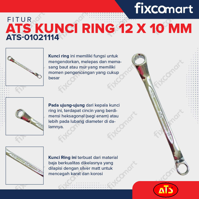 Jadikan pekerjaan Anda lebih mudah dan cepat dengan Kunci Ring "ATS" 10x12mm ini! Pesan sekarang dan nikmati kualitas terbaik. ✨