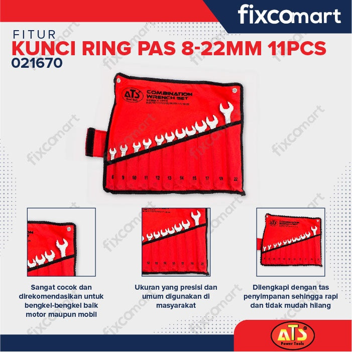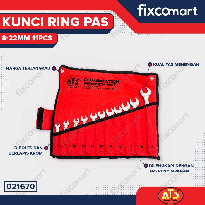 Kunci Ring Pas ATS SET 11 pcs ( 8-22mm)