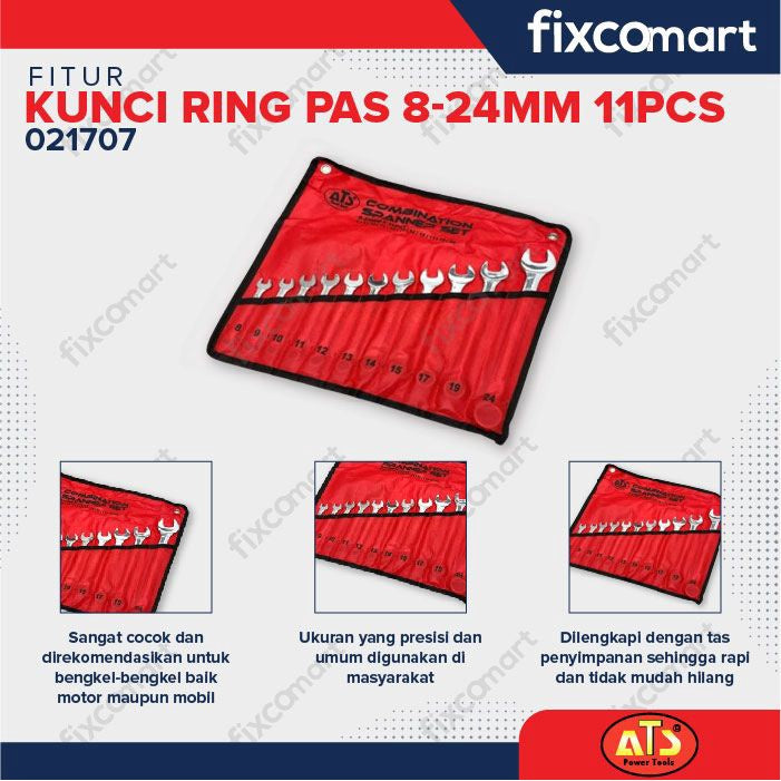 Kunci Ring Pas ATS SET 11 pcs ( 8-24mm)