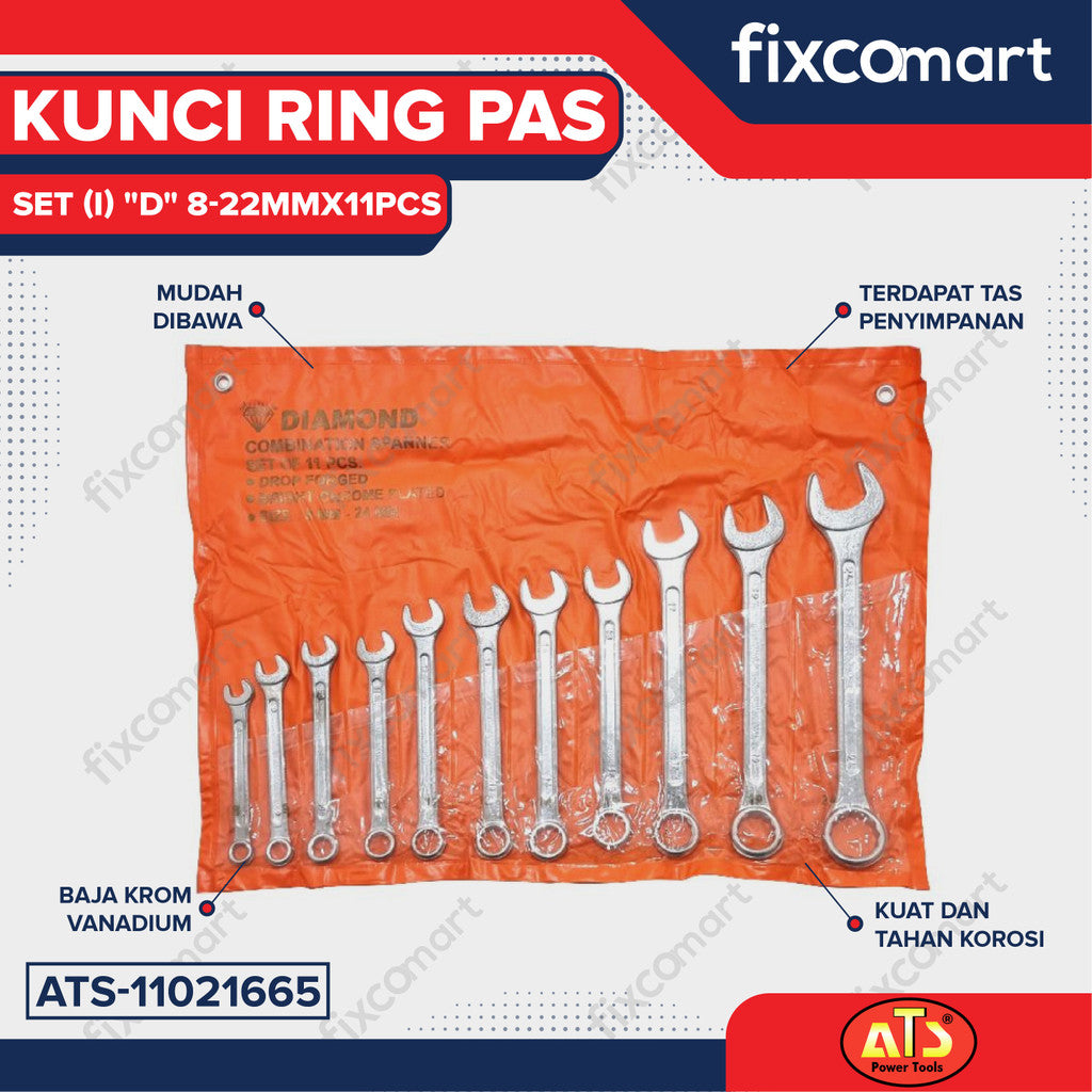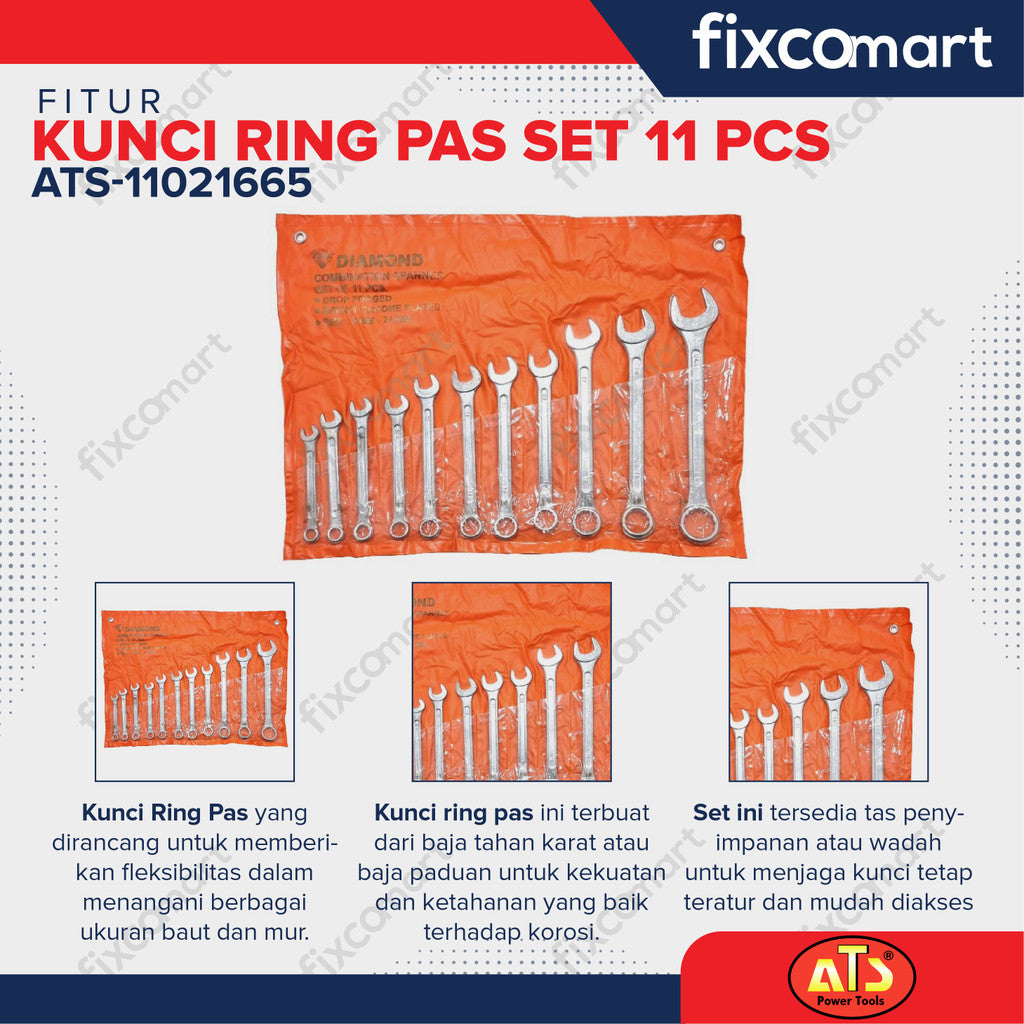 Kunci Ring Pas Combination Spanner Set DIAMOND 11 Pcs 8-22 mm / 8 - 24 mm