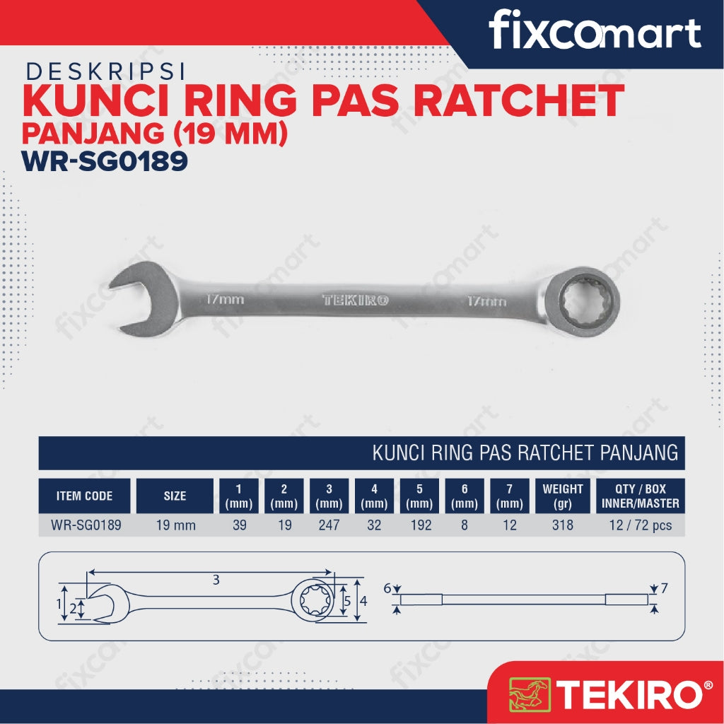 Tekiro Kunci Ring Pas Ratchet Panjang 19 mm