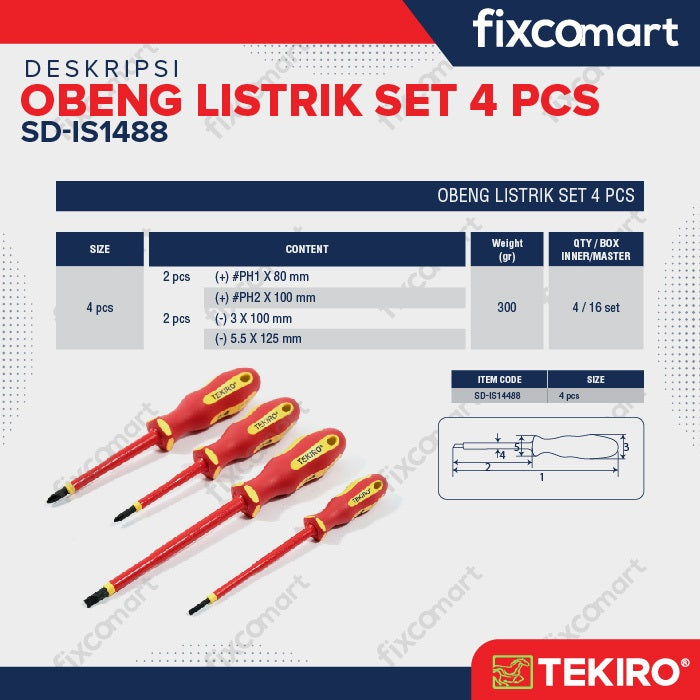 Tekiro Obeng Listrik Set 4 pcs
