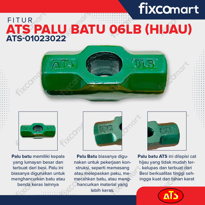 Batu Palu ATS 06LB (Hijau) adalah alat perkakas berkualitas tinggi yang dirancang untuk memenuhi kebutuhan pekerjaan konstruksi, bengkel, atau kebutuhan rumah tangga. Produk ini memiliki keunggulan sebagai berikut: