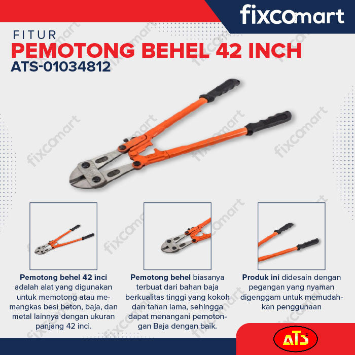 Keunggulan: Pemotong behel ATS 42" adalah pilihan terbaik untuk memastikan pemotongan behel yang presisi dan mudah, cocok untuk berbagai kebutuhan proyek Anda. Aman digunakan dan mudah dirawat, alat ini dapat meningkatkan efisiensi kerja dengan kualitas hasil yang memuaskan.