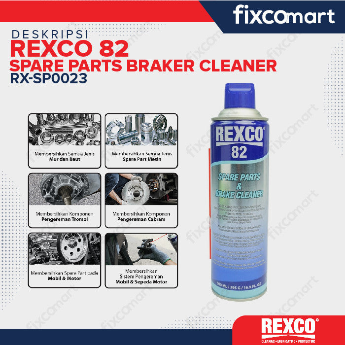 REXCO 82 Spare Part & Brake Cleaner adalah solusi profesional untuk membersihkan rem dan berbagai komponen mesin dengan cepat dan efisien. Dibuat dengan formula khusus yang mampu melarutkan minyak, gemuk, dan kotoran yang menempel pada komponen logam tanpa merusak material dasar.