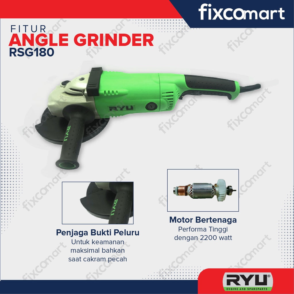 Ryu Angle Grinder / Mesin Gurinda Tangan 7 Inch Rsg 180 2200 W