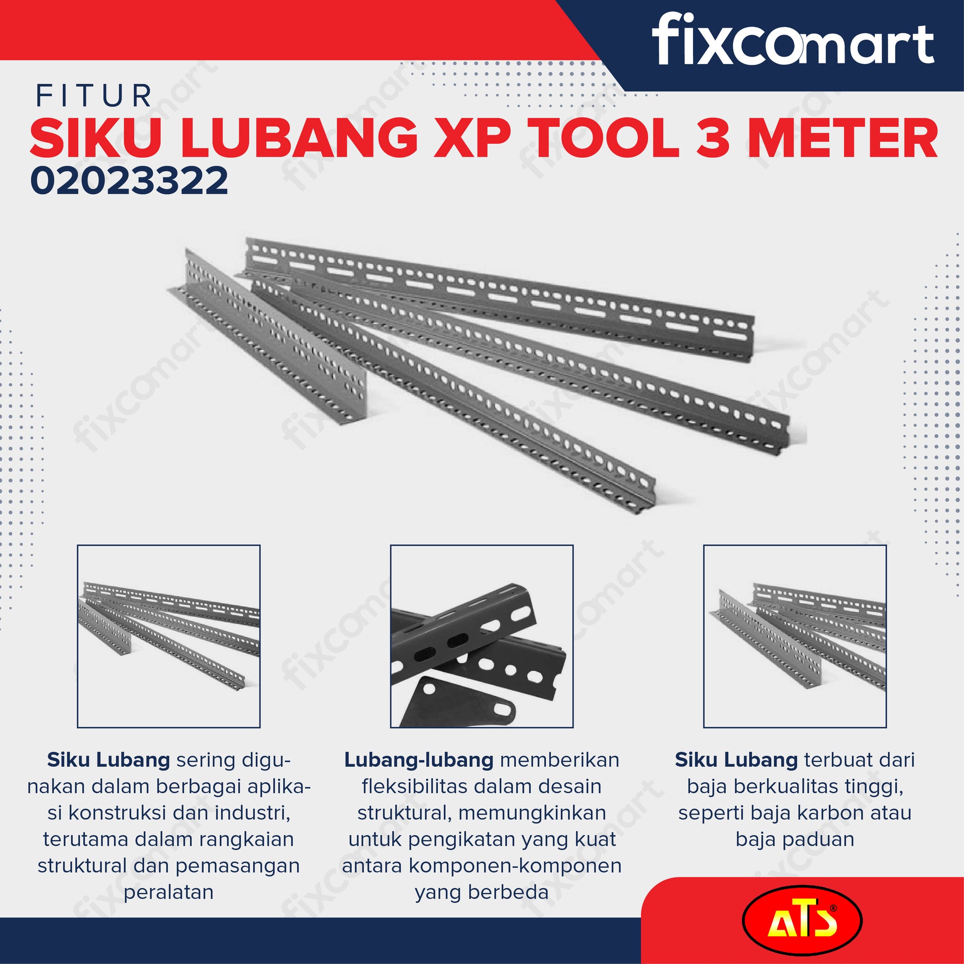 Siku Lubang XP TOOL 3 Meter - Baja Berkualitas Kuat dan Tahan Karat
