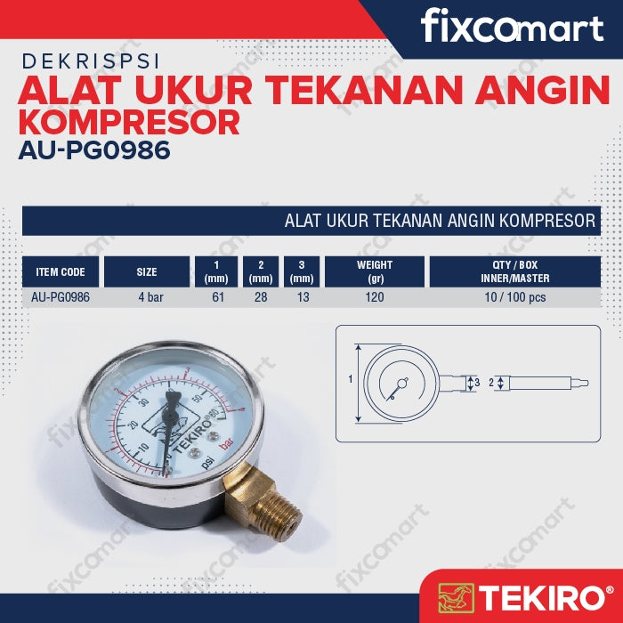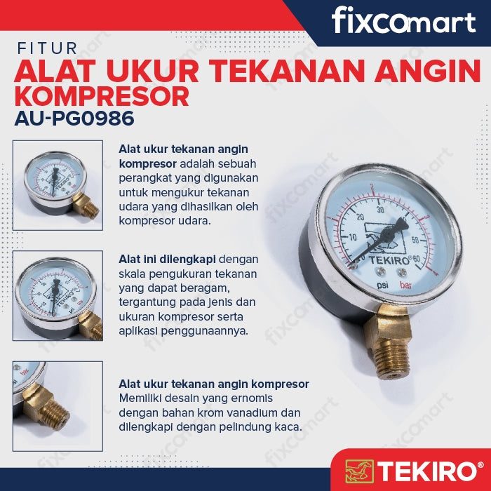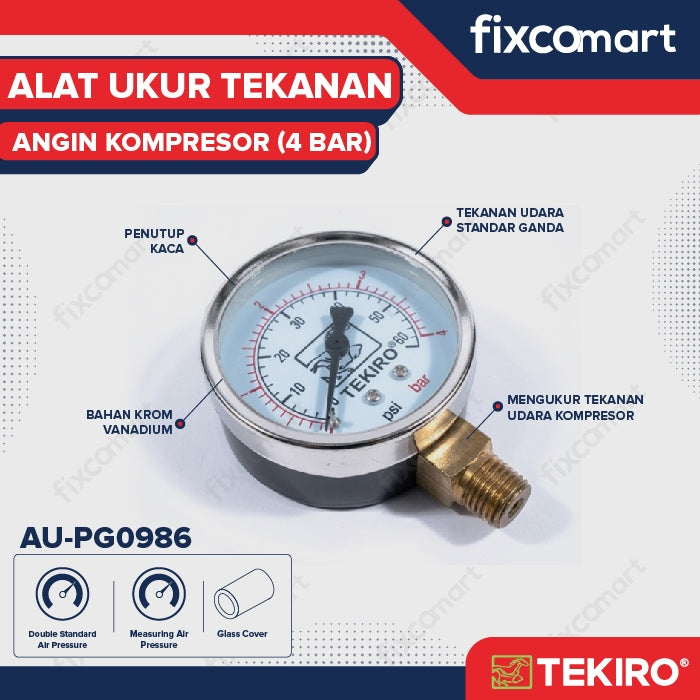 Tekiro Alat Ukur Tekanan Ban 4 Bar / Pressure Gauge
