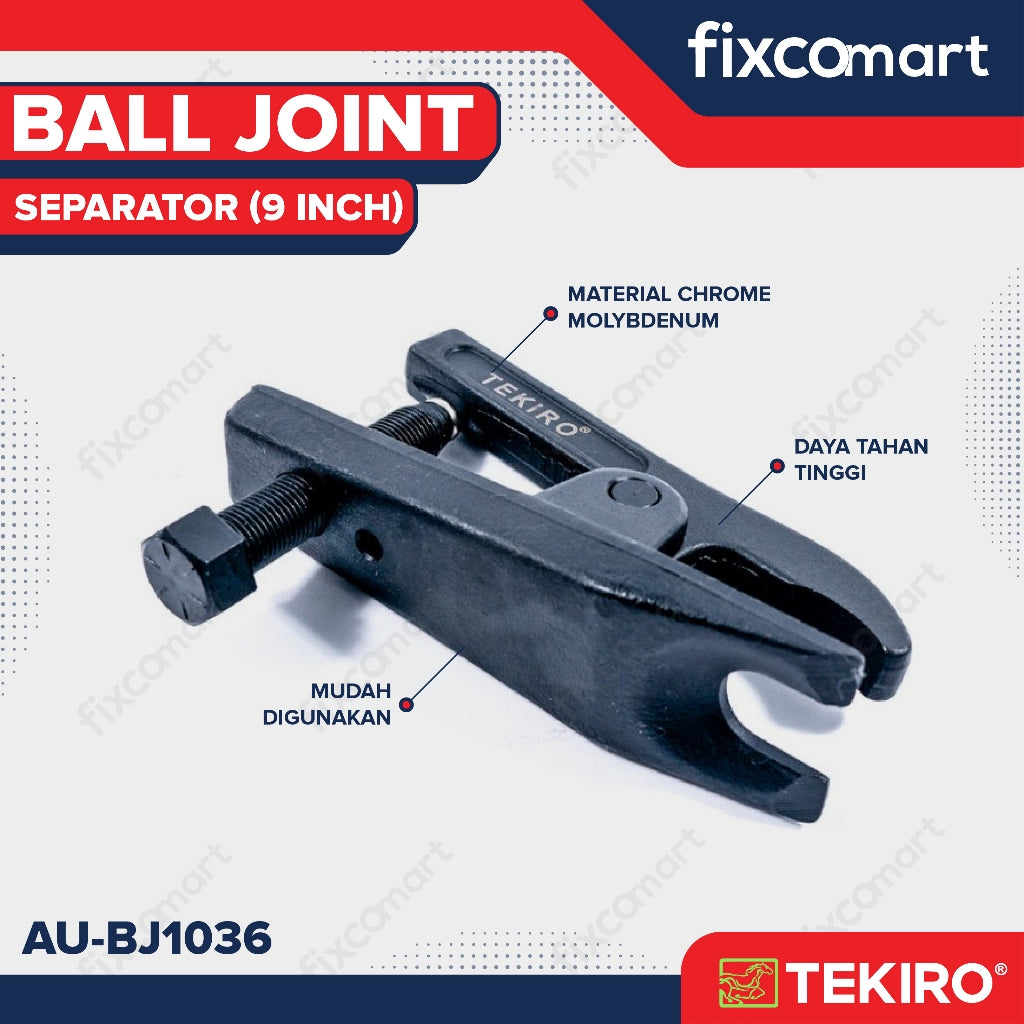 untuk melepaskan ball joint dari lower arm tanpa perlu menggunakan banyak alat bantu dan tenaga yang besar, karena dengan alat ini saja sudah cukup untuk melepaskan ball joint dari lower arm yang sangat sulit tersebut,mempunyai ukuran 9" berdimensi 159mm X 92mm X 31mm