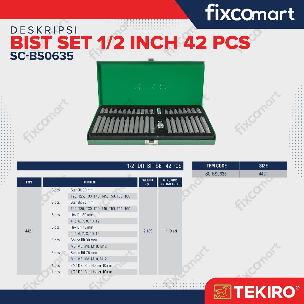 Tekiro Bit Set 42 Pcs / Mata Kunci Sock L Bintang
