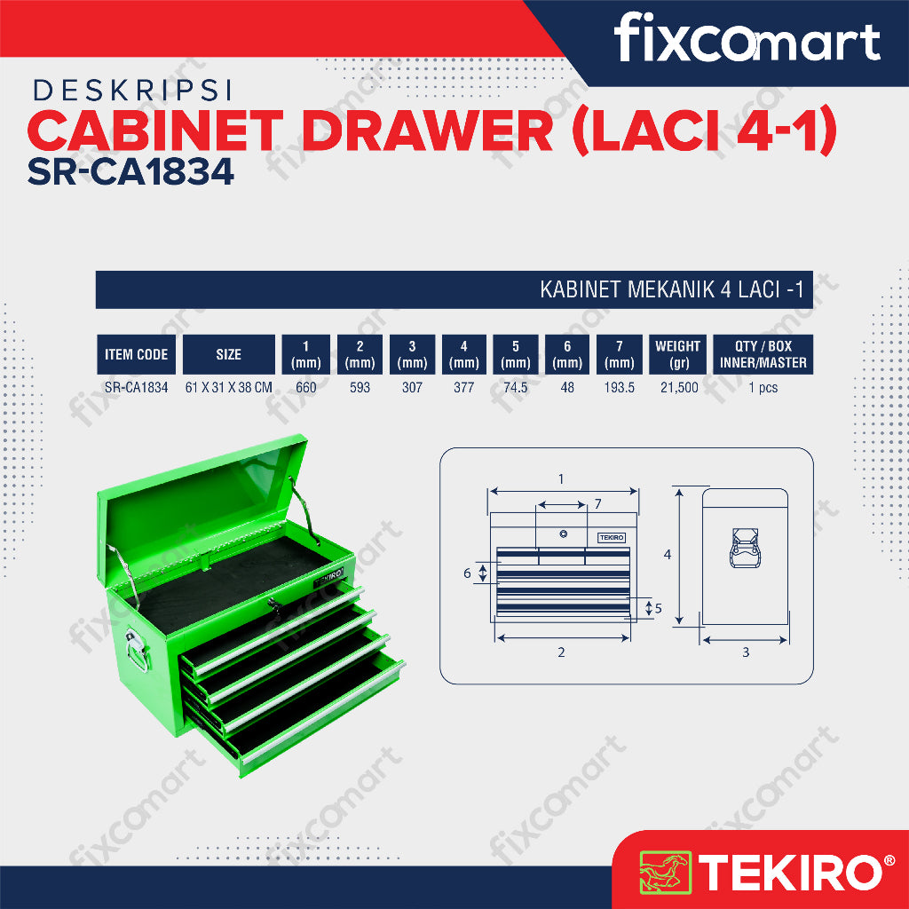 - Kabinet ini memiliki 4 laci untuk menyimpan kunci kunci mekanik.