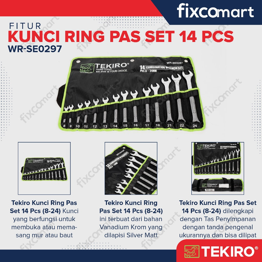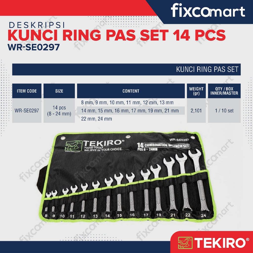 Tekiro Combination Wrench Set / Kunci Ring Pas Set 14 Pcs (8-24 Mm)