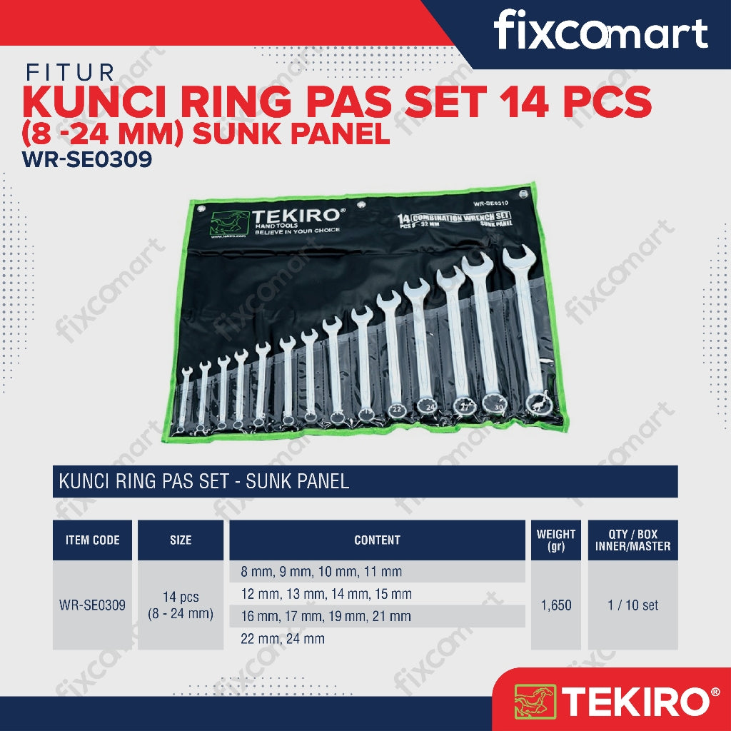 Tekiro Combination Wrench Set / Kunci Ring Pas Set Set 14 Pcs (8-24 Mm) Sunk Panel