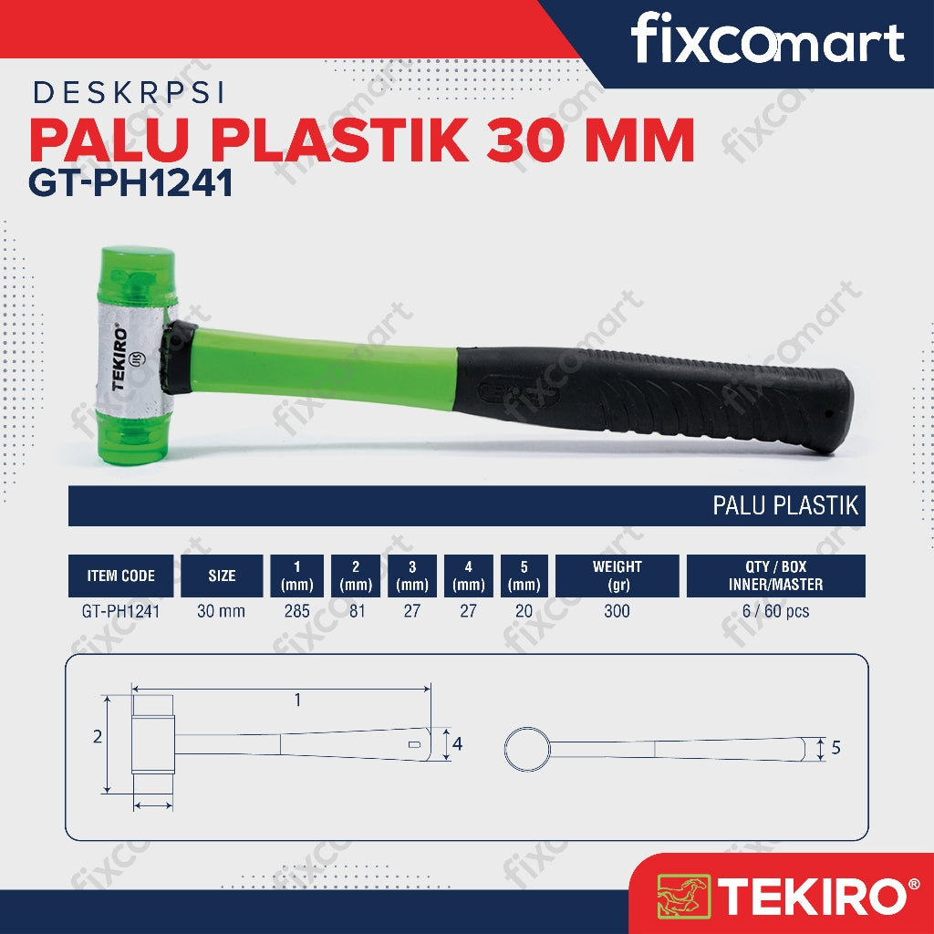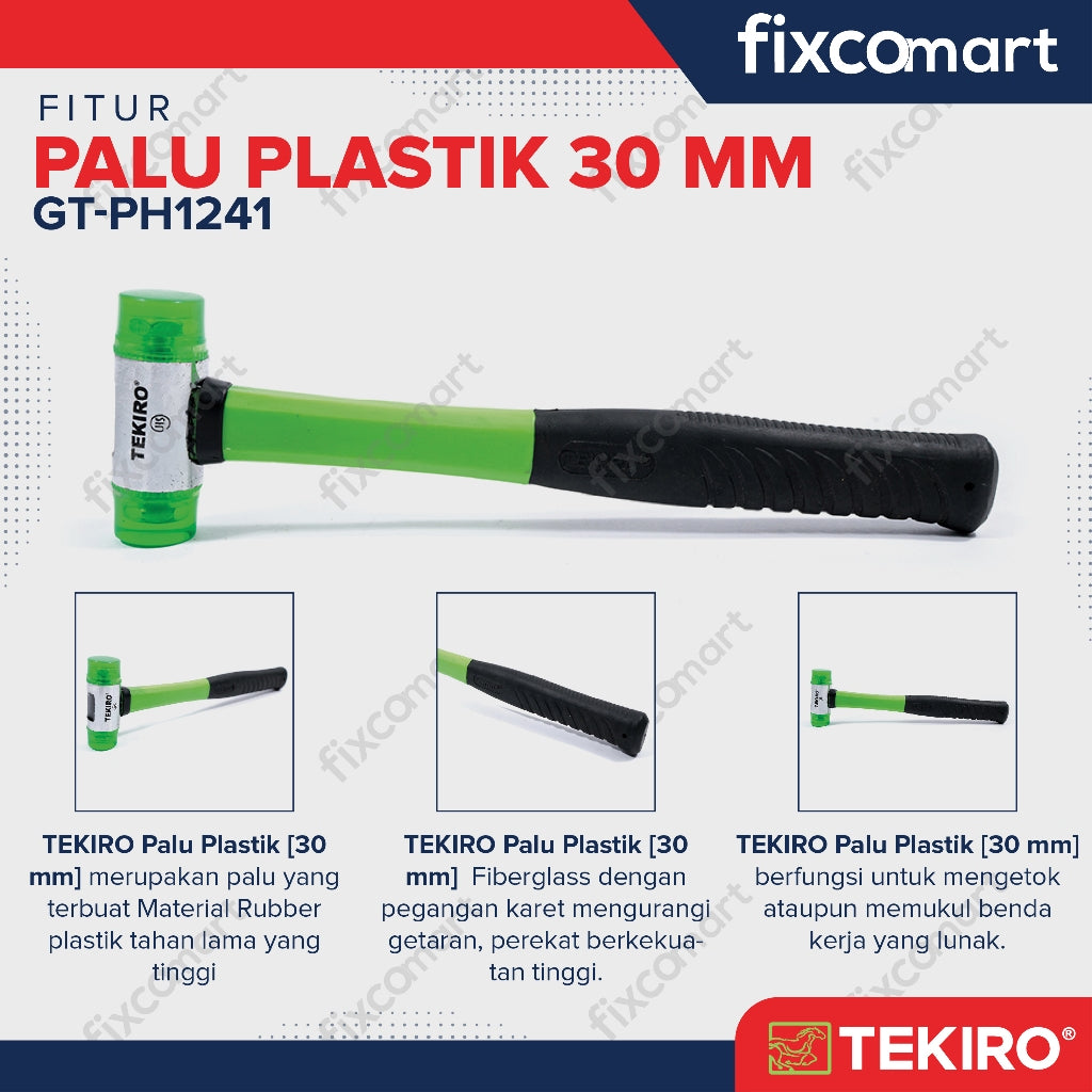 PALU PLASTIK TEKIRO ini mempunyai dua sisi yang sama dari bahan, ukuran dan bentuknya, Bagian Palu plastik digunakan untuk memukul benda-benda yang lunak agar tidak tergores atau pecah misalnya untuk meratakan permukaan plat tanpa meninggalkan goresan.