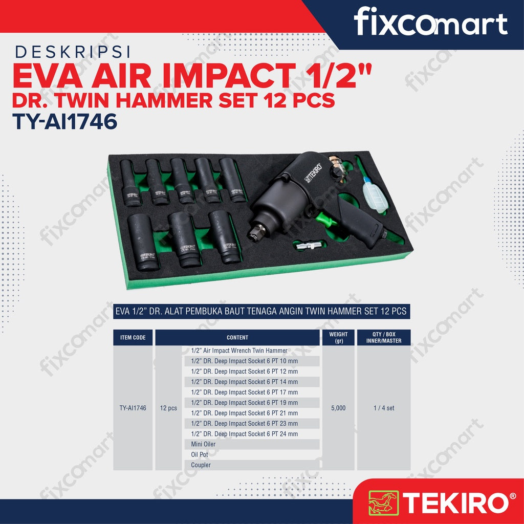 TEKIRO Eva Air Impact 1/2" DR. TWIN HAMMER SET 12 PCS