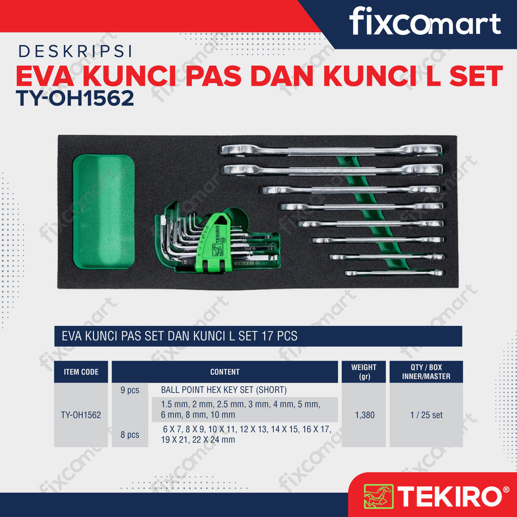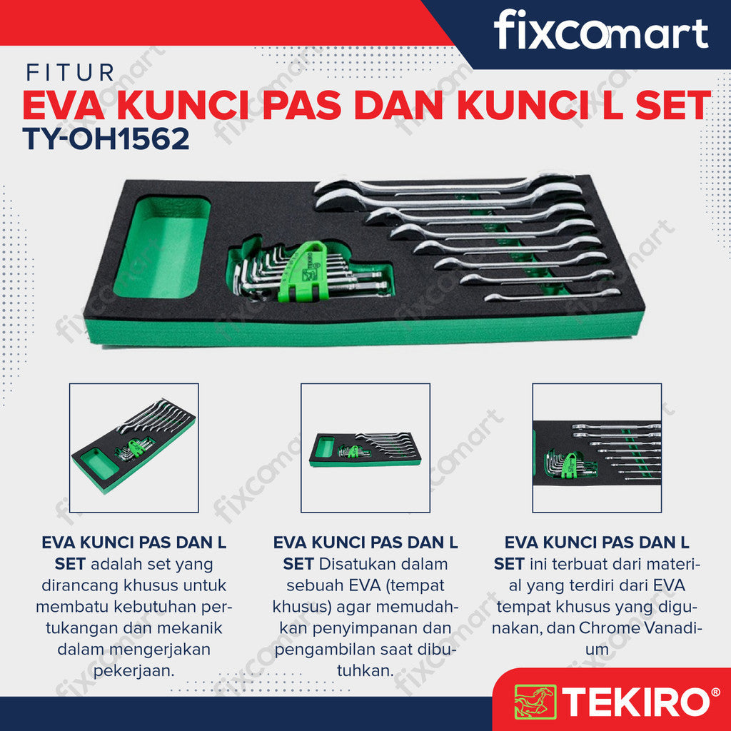 TEKIRO EVA KUNCI PAS DAN L SET adalah set yang dirancang khusus untuk membatu kebutuhan pertukangan dan mekanik dalam mengerjakan pekerjaan. Disatukan dalam sebuah EVA (tempat khusus) agar memudahkan penyimpanan dan pengambilan saat dibutuhkan.