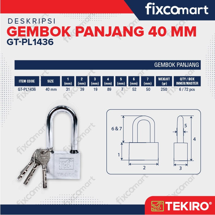 Tekiro Gembok Leher Panjang 40 Mm / Tekiro Padlock Long