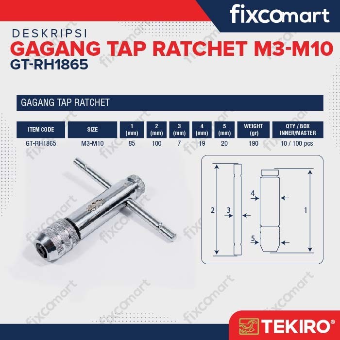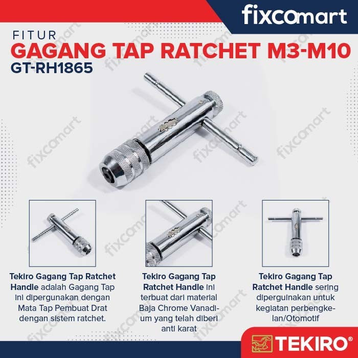 Tekiro Gagang Tap Ratchet Handle adalah Gagang Tap ini dipergunakan dengan Mata Tap Pembuat Drat dengan sistem ratchet.