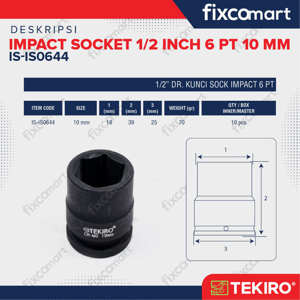 Tekiro Impact Socket 1/2 inch 6 PT 10 mm / mata sock impact
