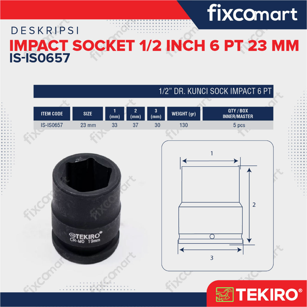 Tekiro Impact Socket 1/2 inch 6 PT 23 mm / mata sock impact
