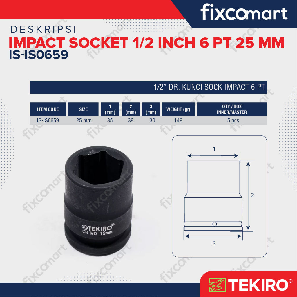 Tekiro Impact Socket 1/2 inch 6 PT 25 mm / mata sock impact