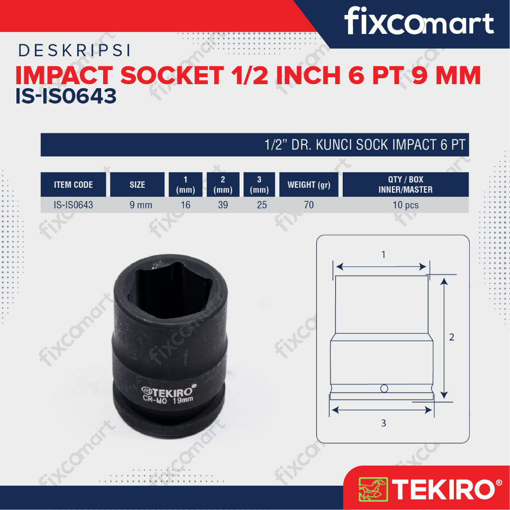Tekiro Impact Socket 1/2 inch 6 PT 9 mm / mata sock impact