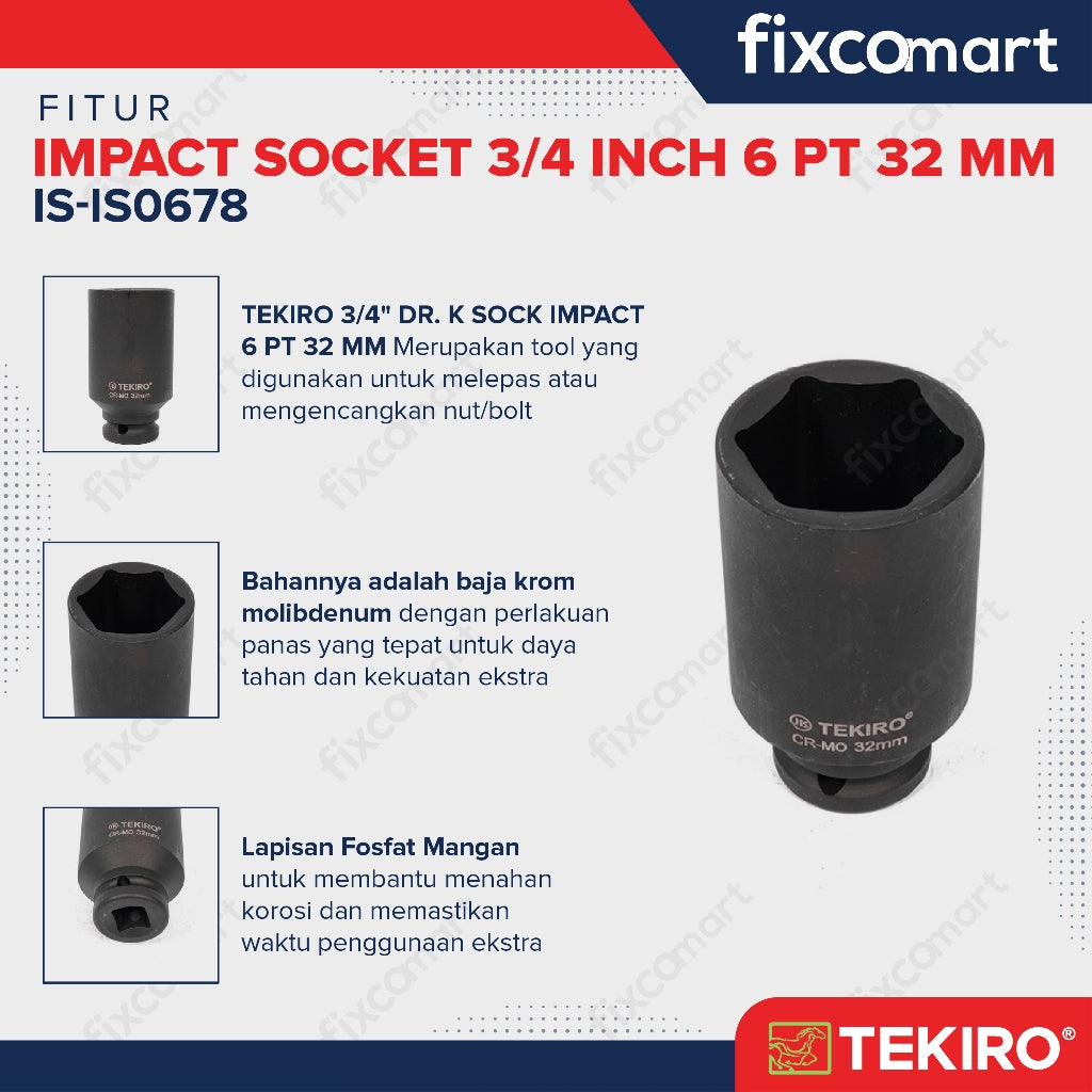 Tekiro Impact Socket 3/4 inch 6 PT 32 mm / mata sock impact