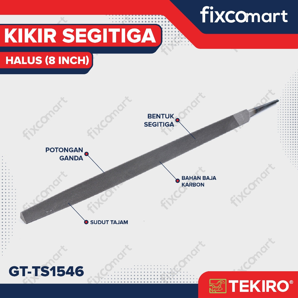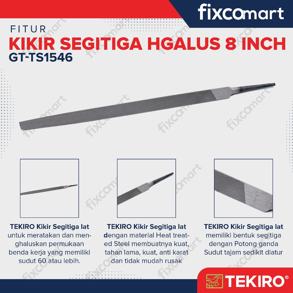 TEKIRO Kikir Segitiga. Merupakan alat untuk meratakan dan menghaluskan permukaan benda kerja yang memiliki sudut dengan sudut 60 atau lebih. Dengan material Heat treated Steel membuatnya kuat dan tidak mudah rusak.