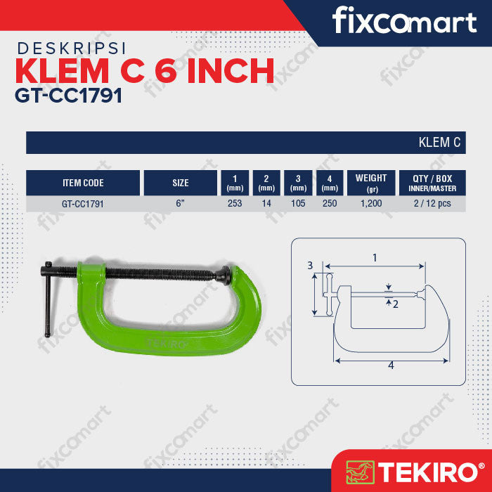 Tekiro Klem C 6 inch ini terbuat dari material Chrome Vanadium yang kuat, tidak mudah patah dan tahan karat