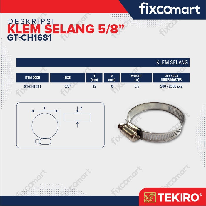TEKIRO KLEM SELANG 5/8" / HOSE CLAMP / TOOLS / PERKAKAS