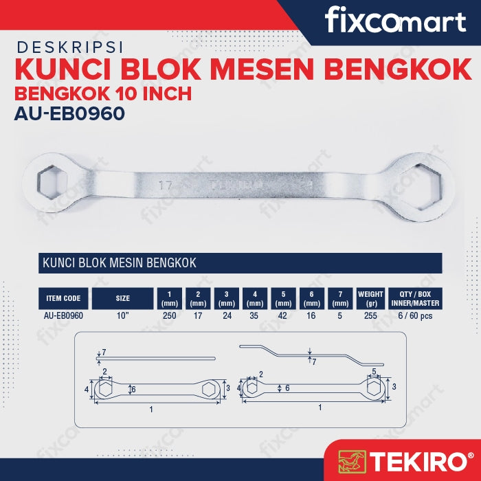 Tekiro Kunci Blok Mesin Bengkok 17 X 24 Mm