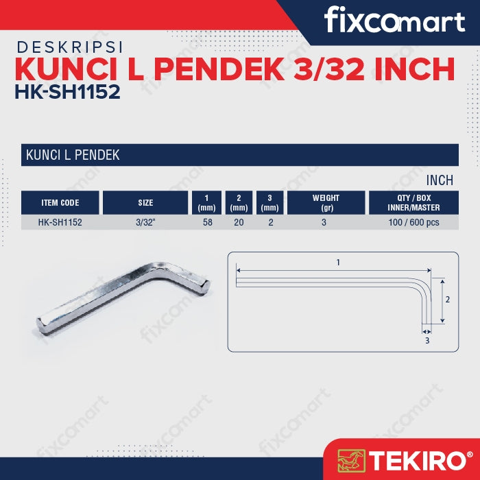 Tekiro Kunci L Pendek 3/32 inch / Hex Key Short