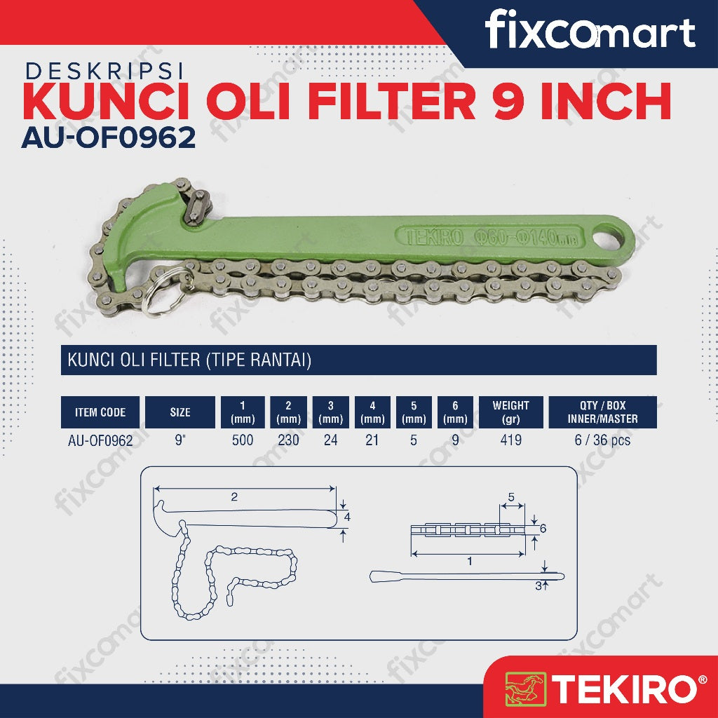 TEKIRO Rantai Kecil Kunci Oli Filter [9 Inch], kunci filter oli model rantai yang memungkinkan membuka filter oli pada tempat yang sulit terjangkau oleh tangan dan juga kunci sok. Cukup dengan melingkarkan rantai pada filter oli maka dapat dengan mudah membuka filter oli. Selain itu ukuran filter yang dapat di buka sangat bervariasi.