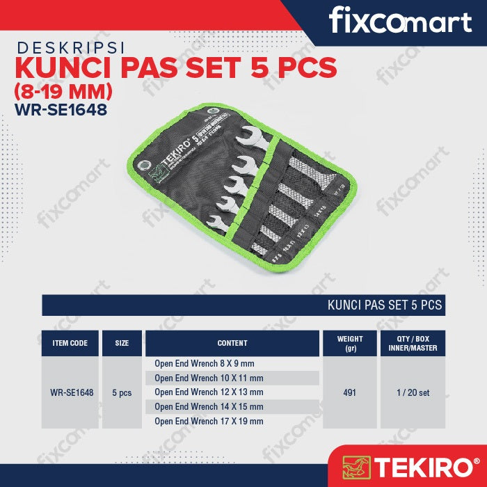 Tekiro Kunci Pas Set 5 Pcs (8-19mm)