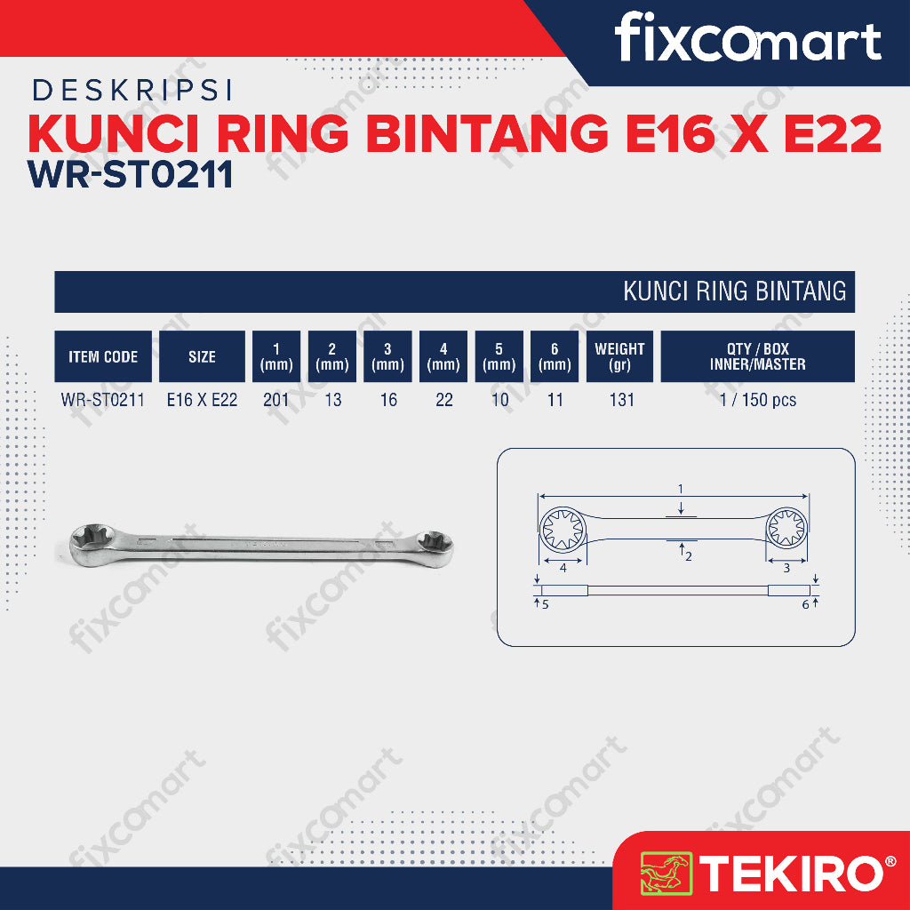 Tekiro Kunci Ring Bintang E16 X E22