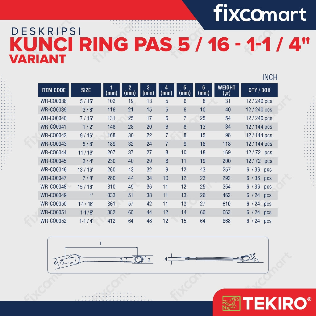 Tekiro Kunci Ring Pas 1/2 Inch