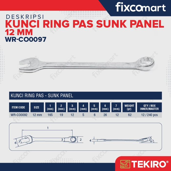 Menggabungkan antara Kunci Ring dan Kunci Pas, Kunci kombinasi ini merupakan peralatan yang harus dimiliki untuk bongkar pasang mesin motor/mobil serta memiliki bentuk yang lebih khusus, Kunci Ring Pas Sunk Panel.
