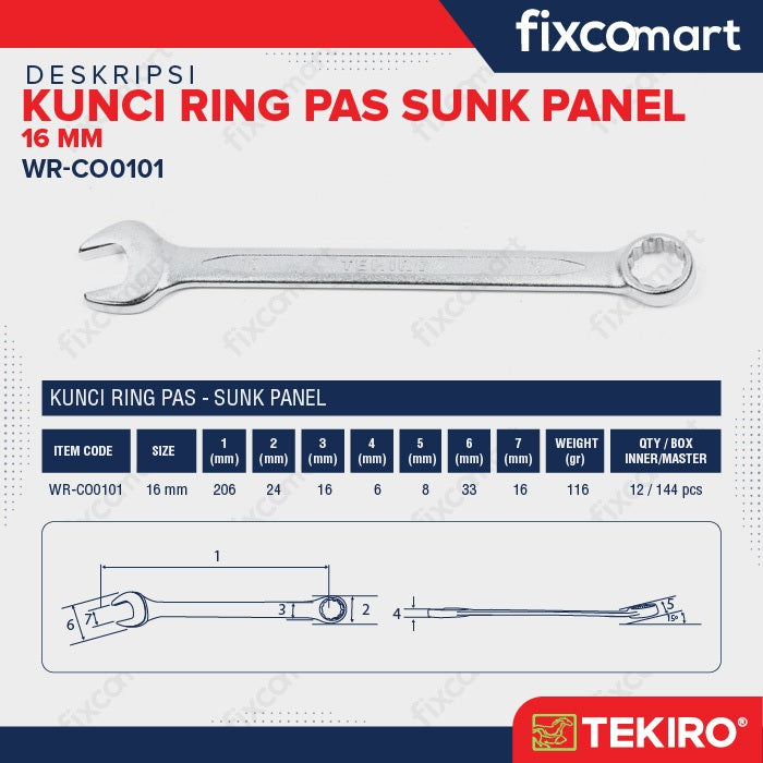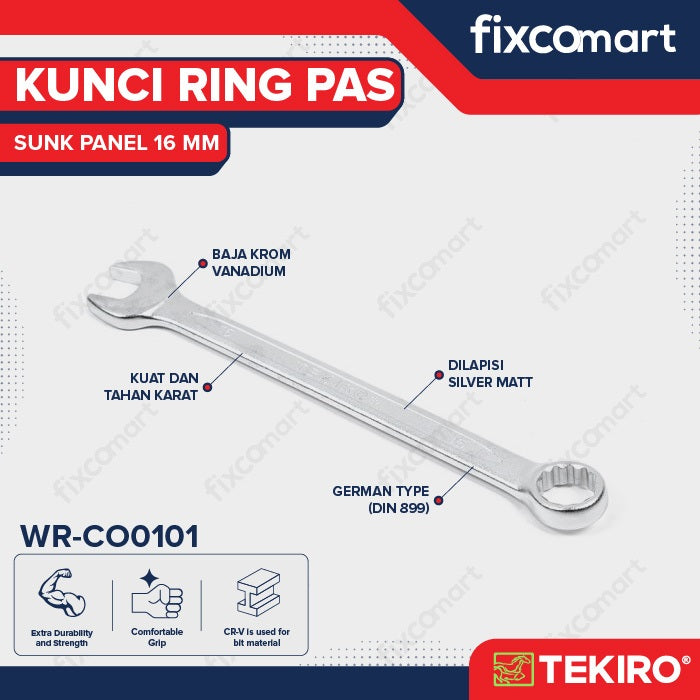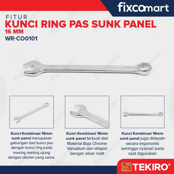 Tekiro Combination Wrench - Sunk Panel 16 mm