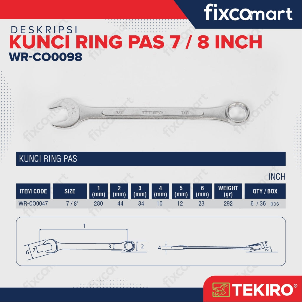 Tekiro Kunci Ring Pas 7/8 Inch / Tekiro Kunci Kombinasi
