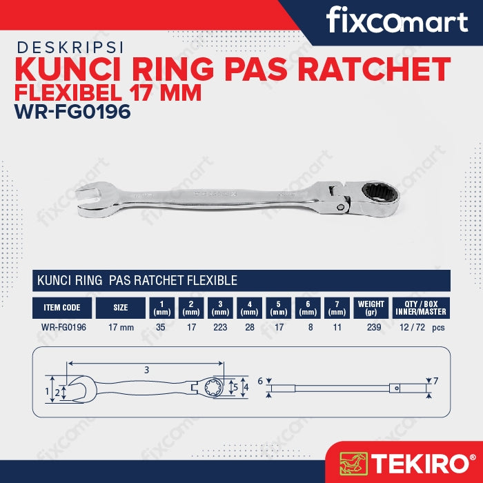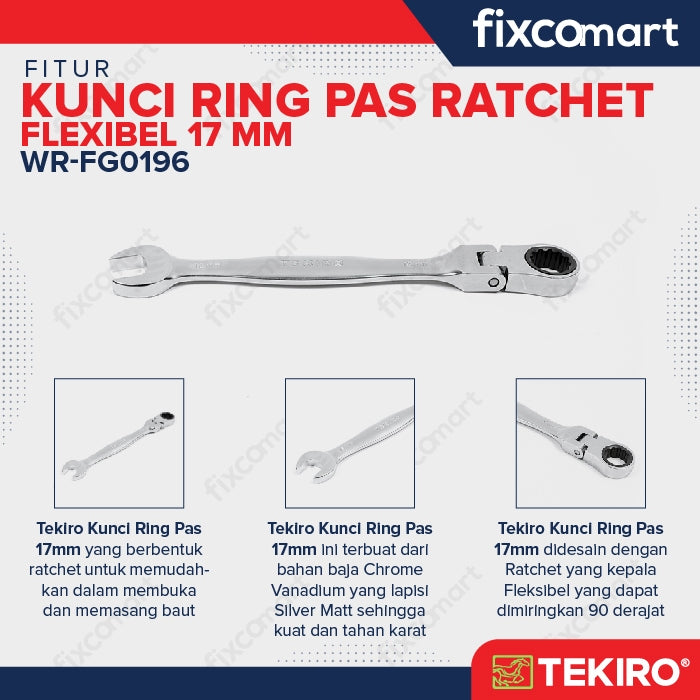 Tekiro Kunci Ring Pas Ratchet Fleksibel 17 mm