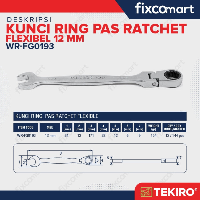 Tekiro Kunci Ring Pas Ratchet Flexible 12 mm